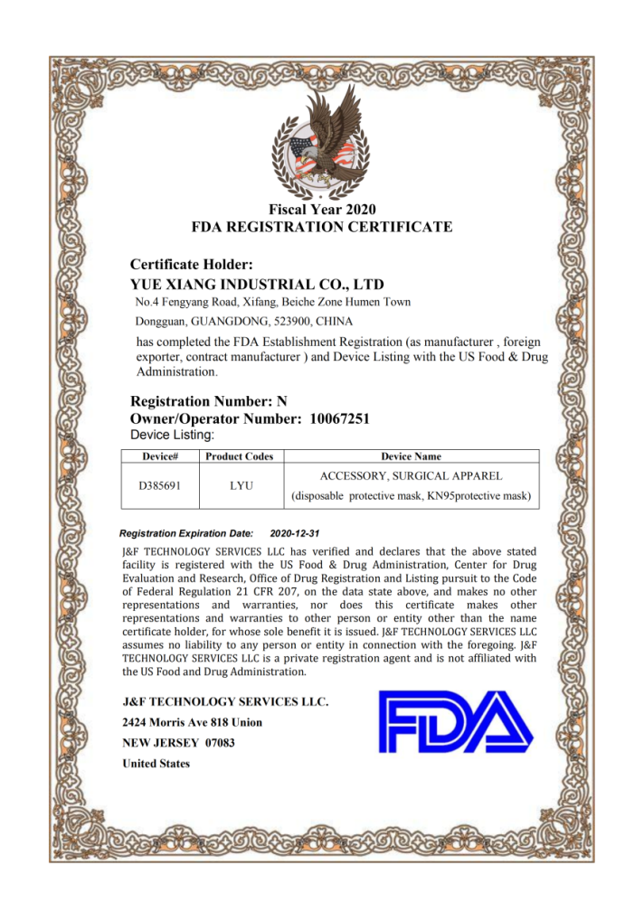 恭祝東莞市越祥實業有限公司在創思維驗廠之家輔導下通過FDA及CE認證