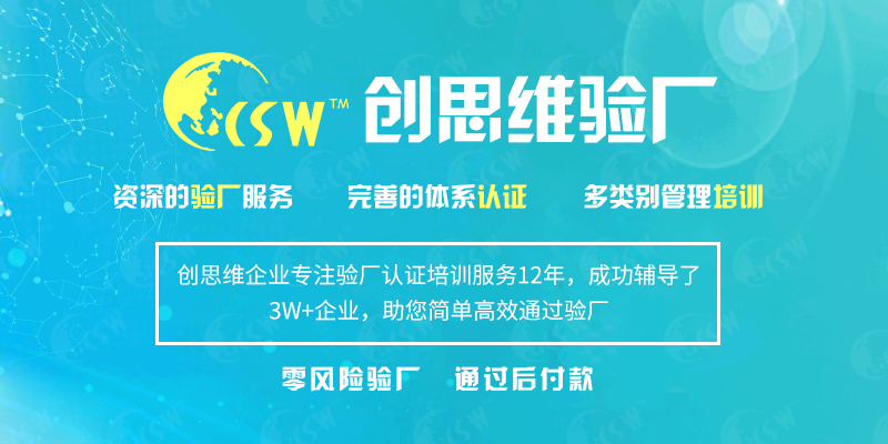 創思維專業從事客戶驗廠、認證、咨詢輔導,價格公道,服務優良,“咨詢+輔導+考勤”一站式服務保姆式輔導,全方位實時跟蹤,多年來成功幫助上萬家企業順利通過驗廠,在行業中有口皆碑!
