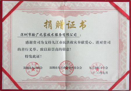 中國驗廠網疫情防控捐贈證書