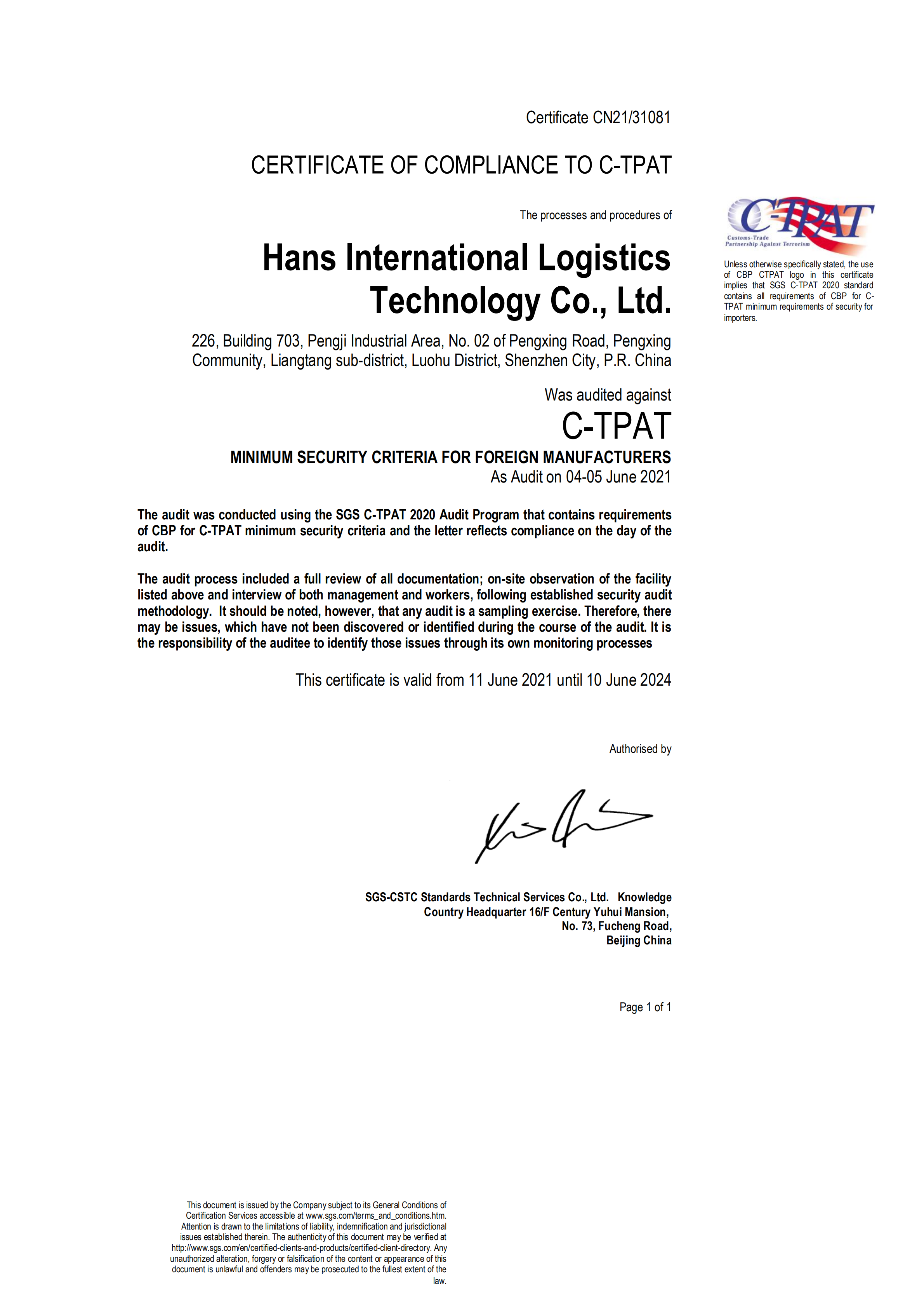 祝深圳市安拓浦科技有限公司通過BSCI驗(yàn)廠與SGS C-TPAT認(rèn)證,C-TPAT證書取得行業(yè)最高100分