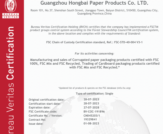 祝賀廣州宏柏印刷包裝有限公司2023年快速通過BV- FSC認證
