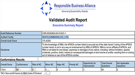 祝賀華耀(柬埔寨)有限公司 WCFO (CAMBODIA) CO., LTD. 2024年快速通過RBA認(rèn)證并順利取得銀牌