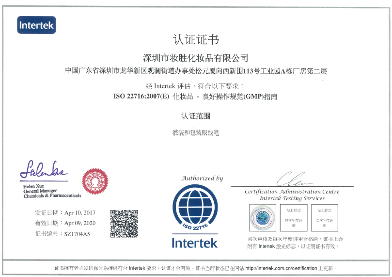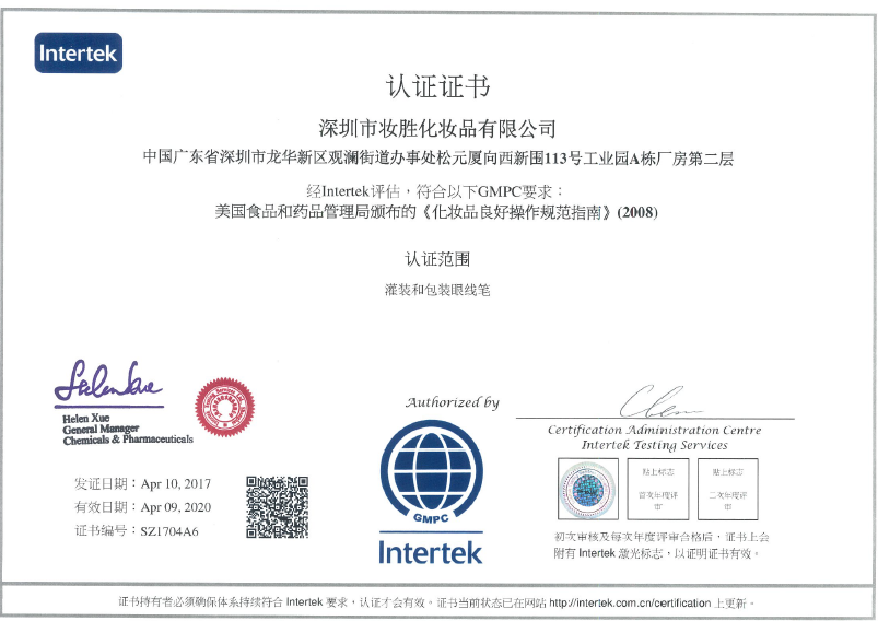 祝賀深圳市妝勝化妝品有限公司順利通過(guò)ITS GMPC及ISO22716認(rèn)證