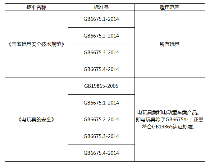 玩具類主要的適用執行標準如下: